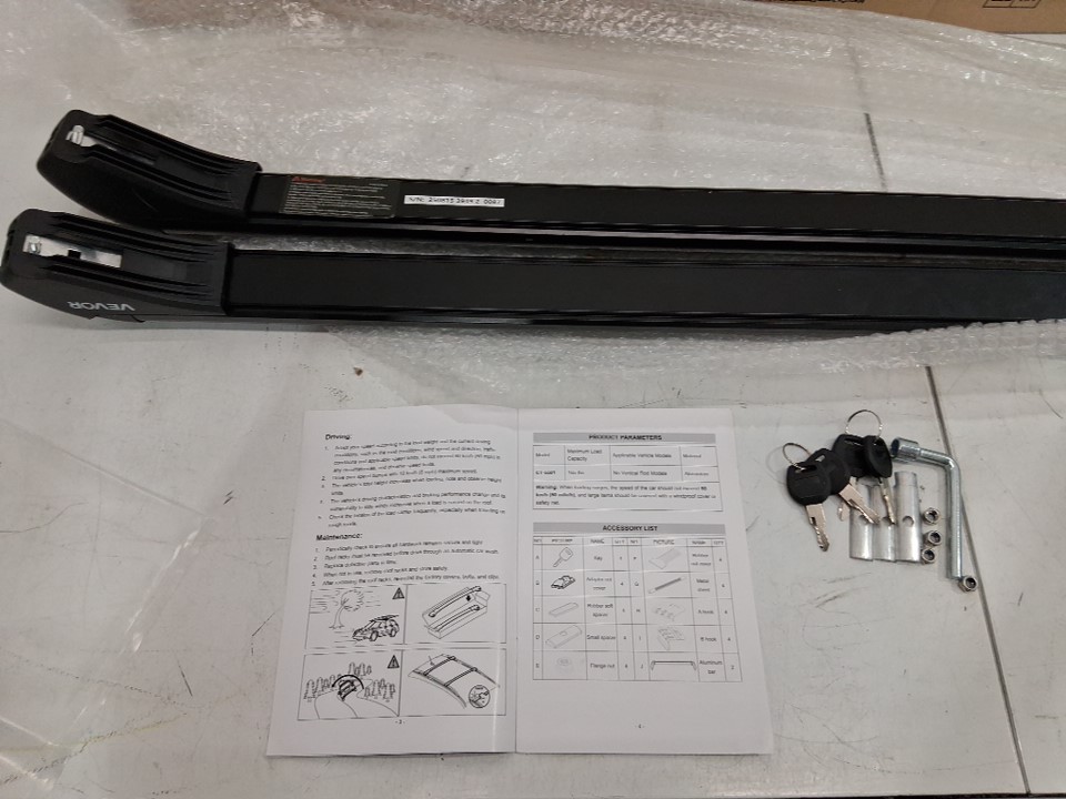 2PK VEVOR LOCKABLE UNIVERSAL ROOF RACK CROSS BAR SET FOR NAKED ROOFS - 165LB MAX - FOR ROOFS WITH 43.3" - 44.5" RAIN GROOVE DISTANCE - BLACK (MODEL: CT-5501)