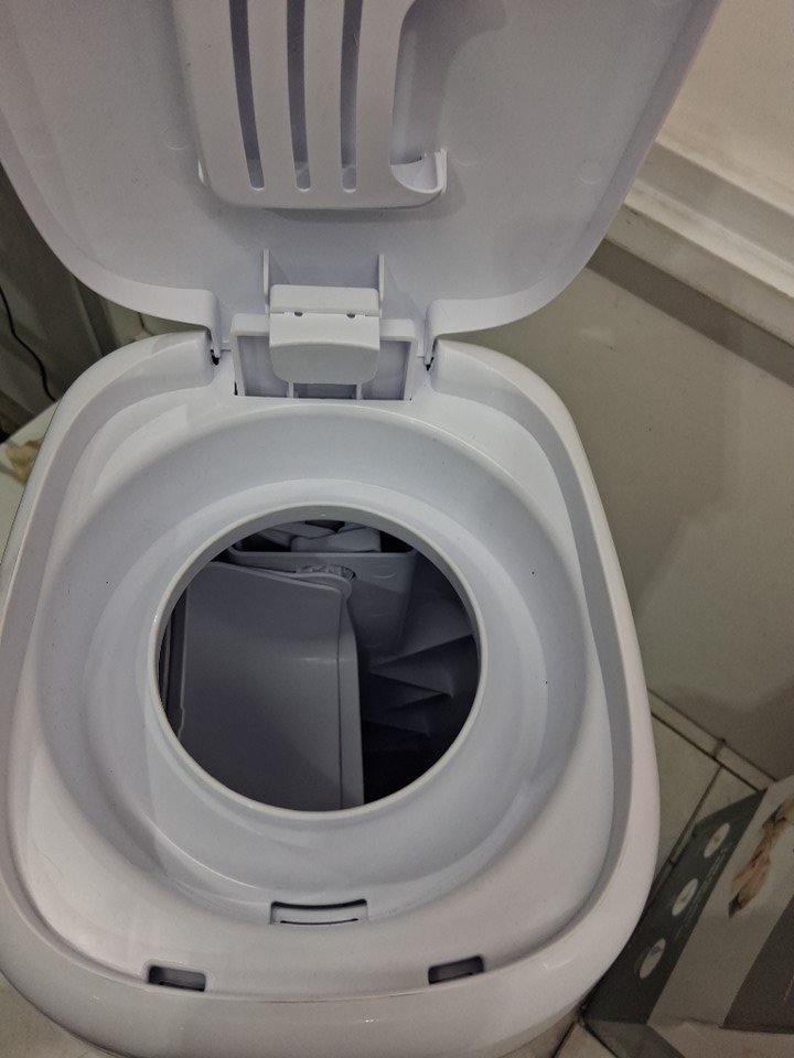 There is some dust/hair on the pail and a scuff mark on the lid indicating previous handling/use (see photos) Please note that the bags and carbon filters are not included