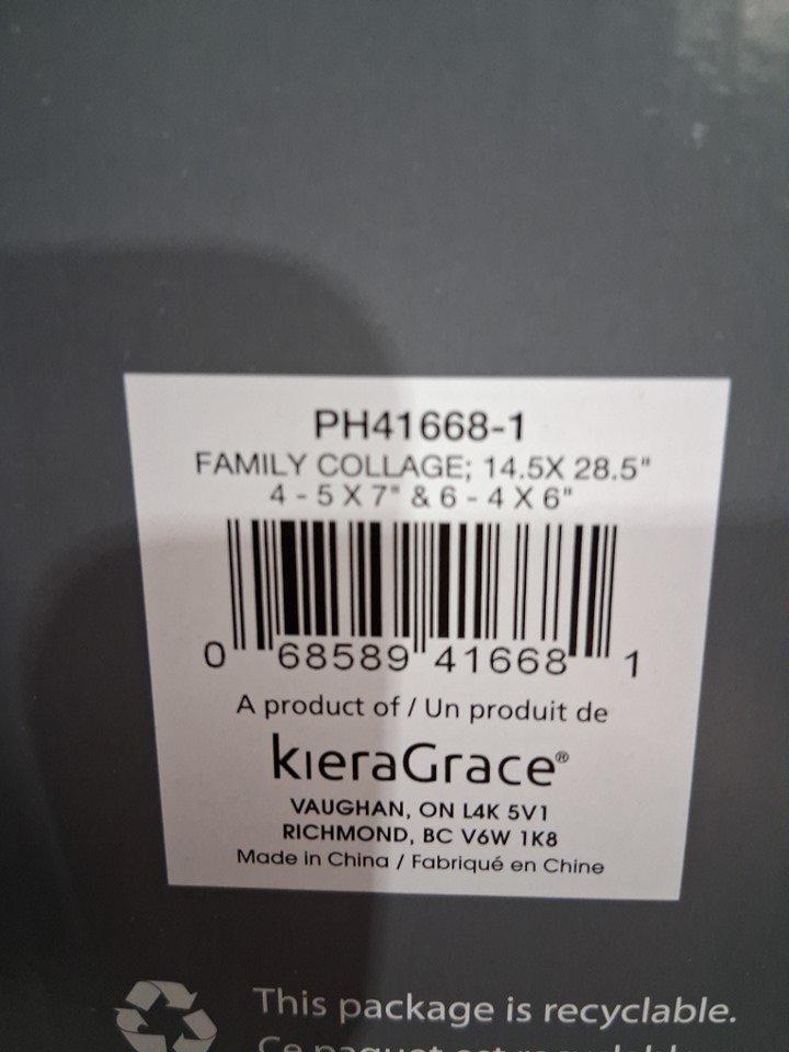 KIERA GRACE KG FAMILY PICTURE COLLAGE FRAME - 14.5" x 28.5"- FITS 4"-5" x 7" AND 6"-4" x 6" PHOTOS - BLACK (MODEL: PH41668-1 FAMILY)