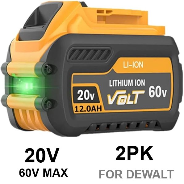 2PK Lithium Ion Volt Rechargeable Replacement Battery for Dewalt Tools -20V / 60V Max -12AH (Model: DCB609)