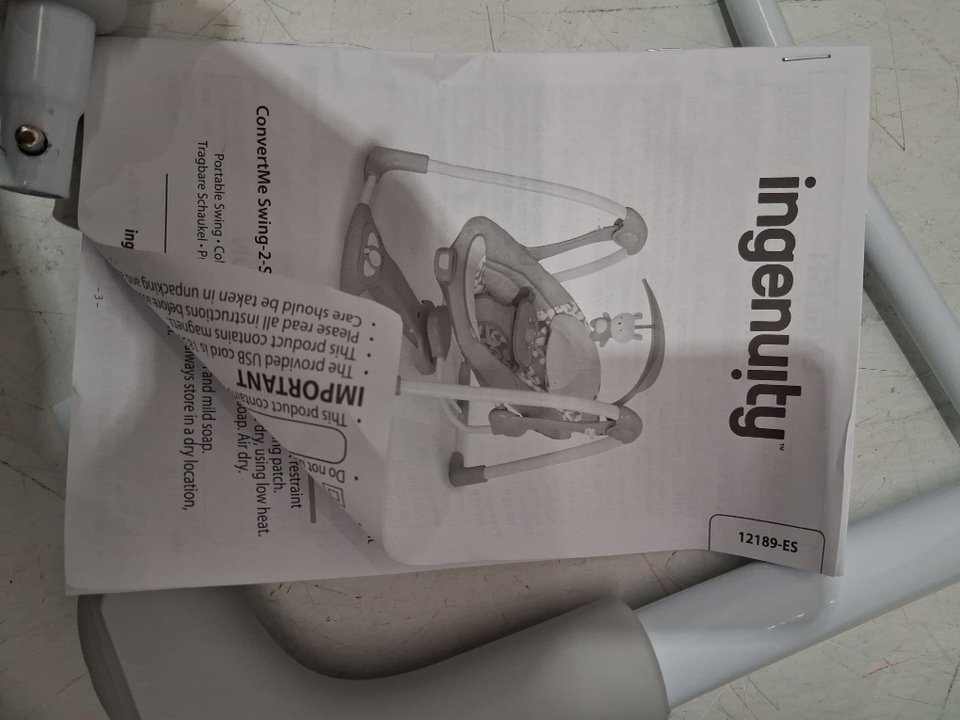 INGENUITY CONVERTME SWING-2-SEAT corded PORTABLE SWING - OM to 9M - RAYLAN FASHION / grey (MODEL: 12189-es)
