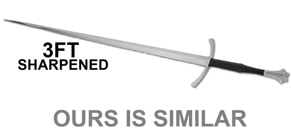 Replica Type XIIIA Medieval Longsword - Sharpened 3FT Blade - Silver/Black