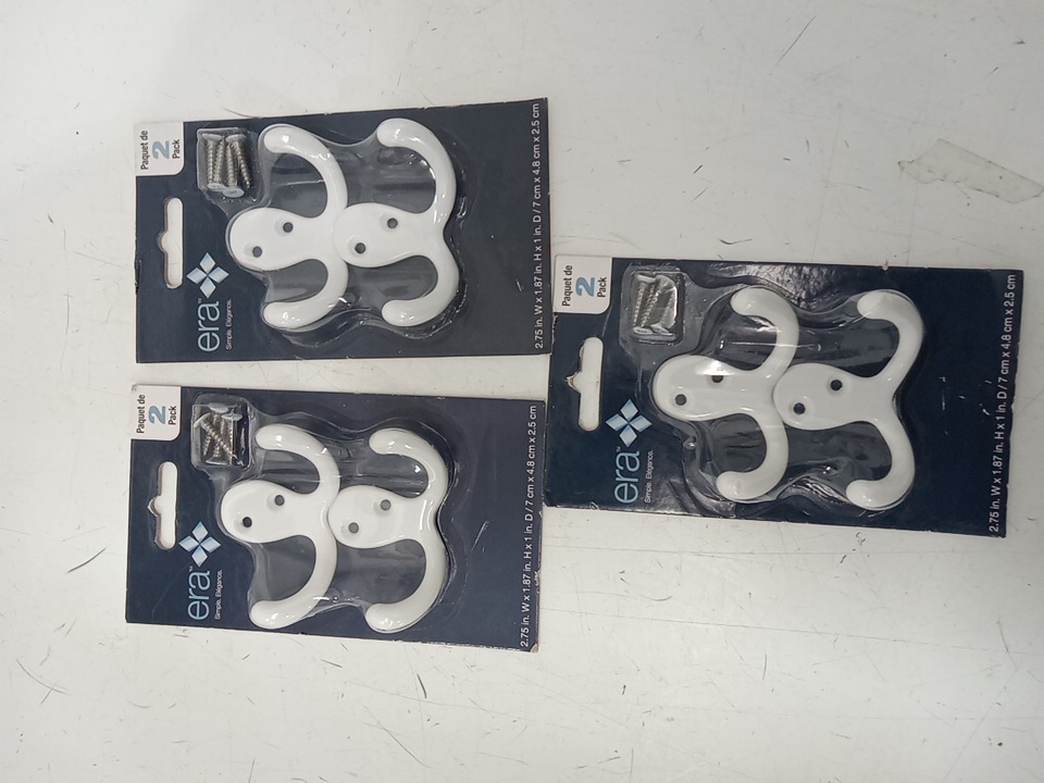 3 (2PK) ERA Double Hooks - 2.75"X1.87" - WHITE