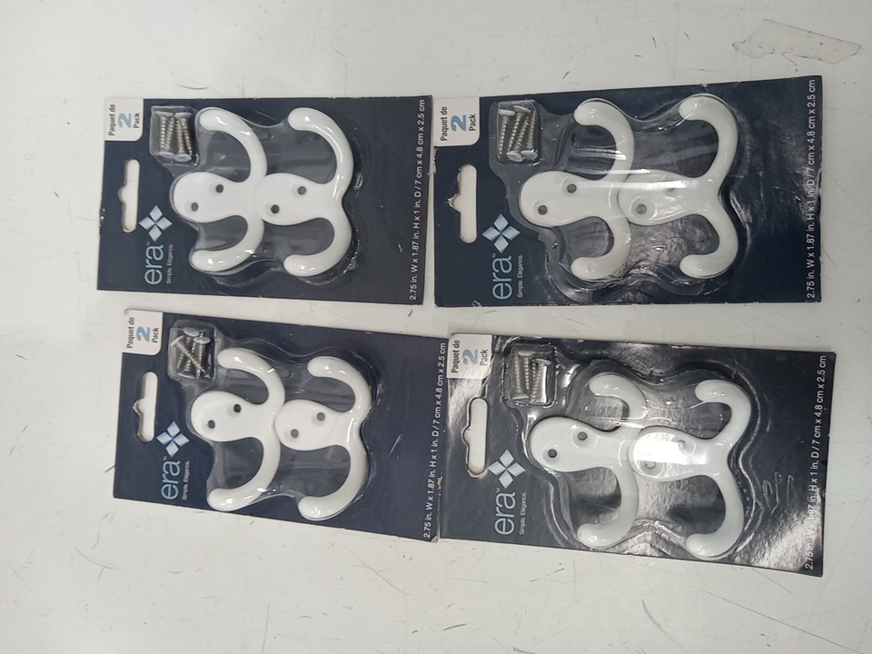 4 (2PK) ERA Double Hooks - 2.75"X1.87" - WHITE