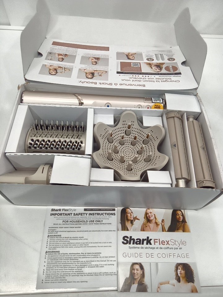 SHARK FLEXSTYLE AIR STYLING & DRYING SYSTEM WITH CURL-DEFINING DIFFUSER - OVAL BRUSH - CONCENTRATOR - AND AUTO-WRAP CURLERS - STONE/ROSE GOLD (MODEL:HD435c).
