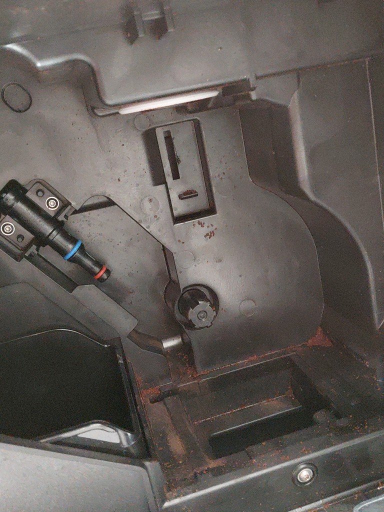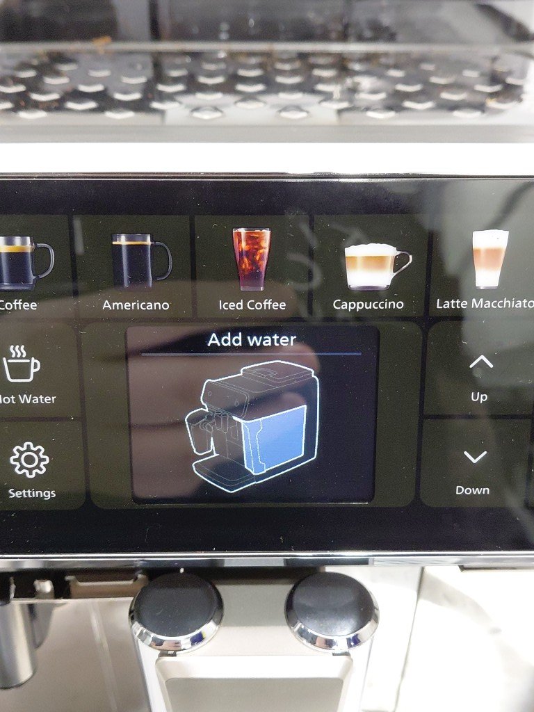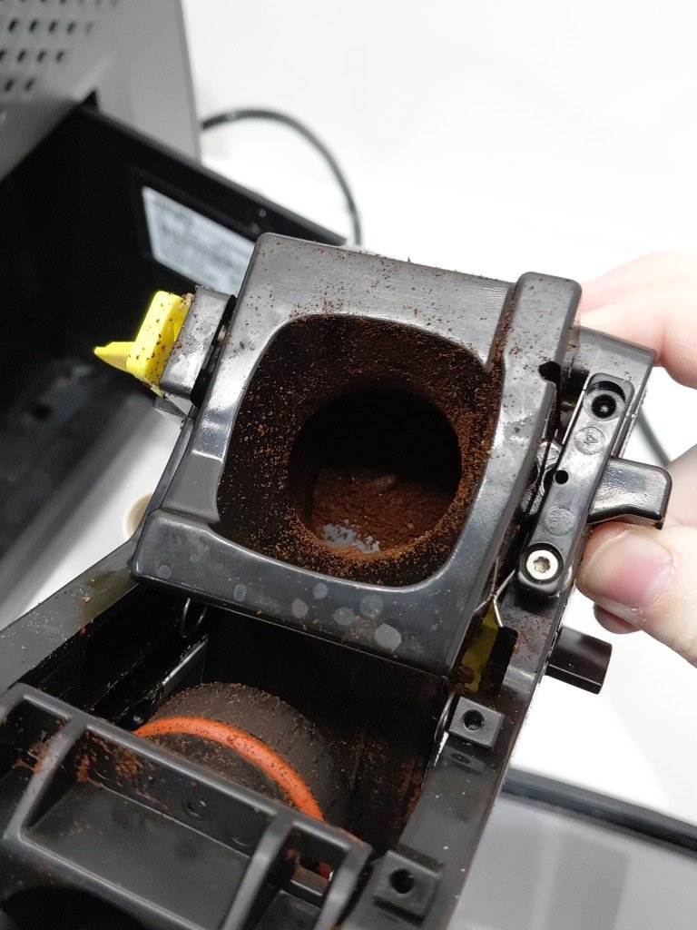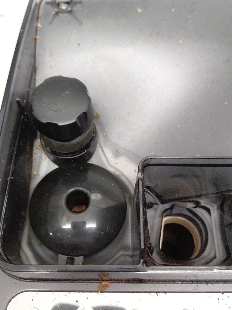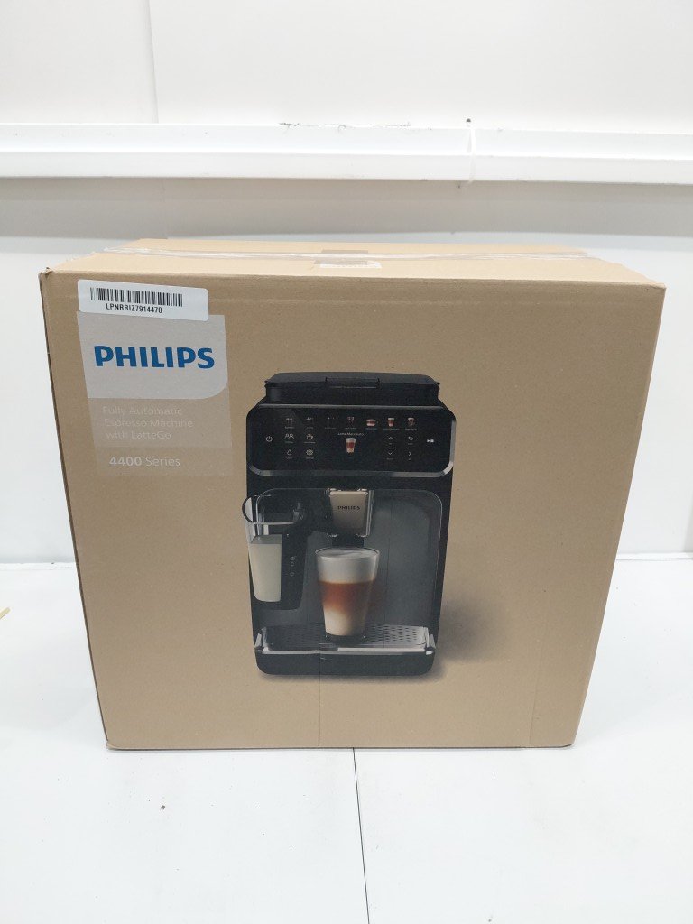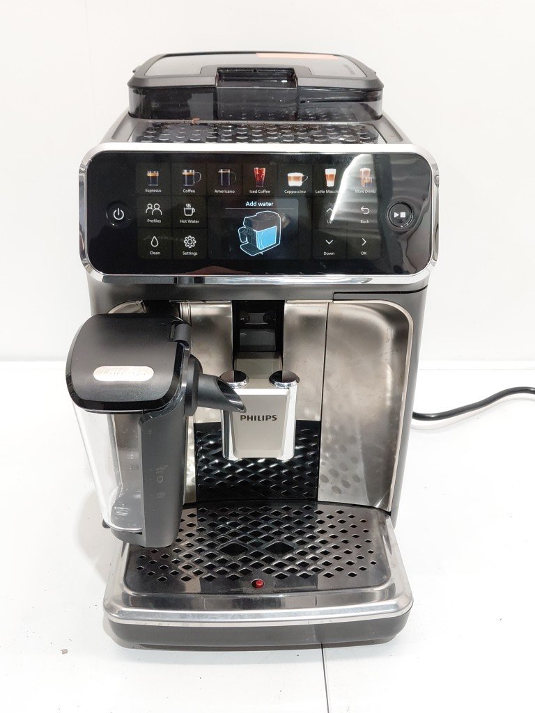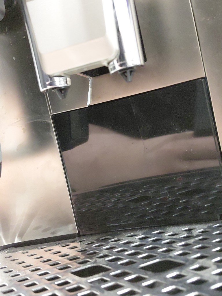 item shows signs of previous use (coffee residue, water spots) front panel trim is cracked but should not effect function unable to fully test