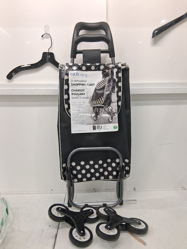 Bios living 3 wheeled foldable shopping cart - 66lbs max - black/white polka dots