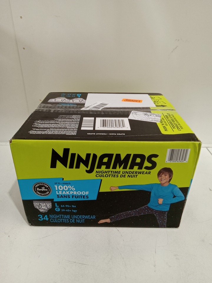 34PK UNISEX YOUTHS NINJAMAS NIGHTTIME UNDERWEAR WITH ODORMASK & ALL-NIGHT LEAK PROTECTION - LARGE - BLUE/GREEN/WHITE