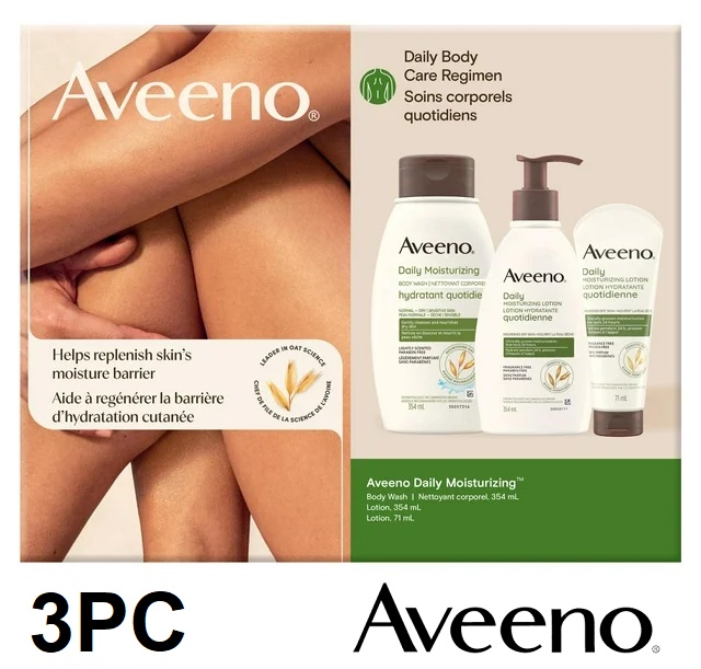 3PC Aveeno Daily Body Care Regimen Set with Body Wash, Lotion, and Travel Size Lotion - 354mL and 74mL