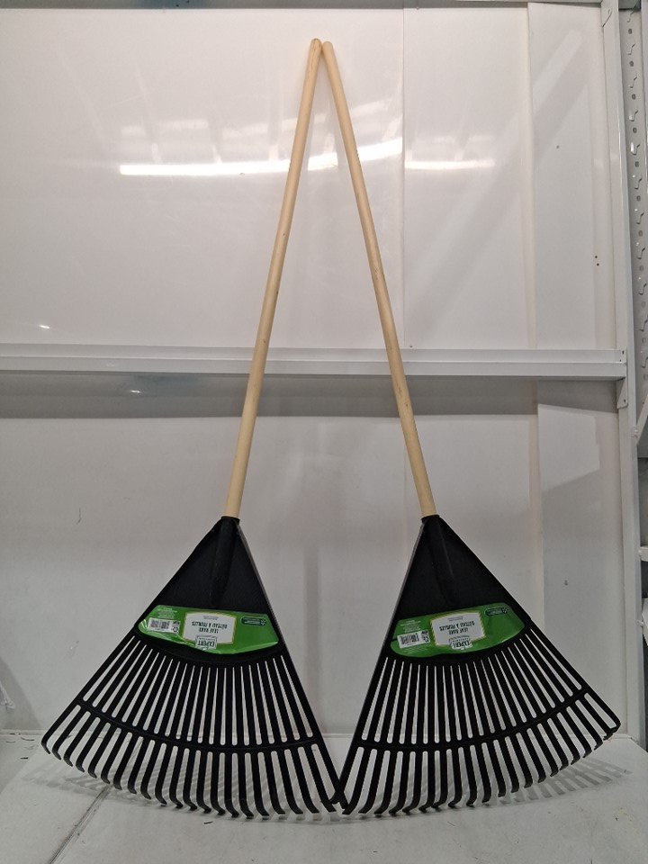 Some cracks and dents in wood as well as light warping on plastic rake heads from travel (See photos).