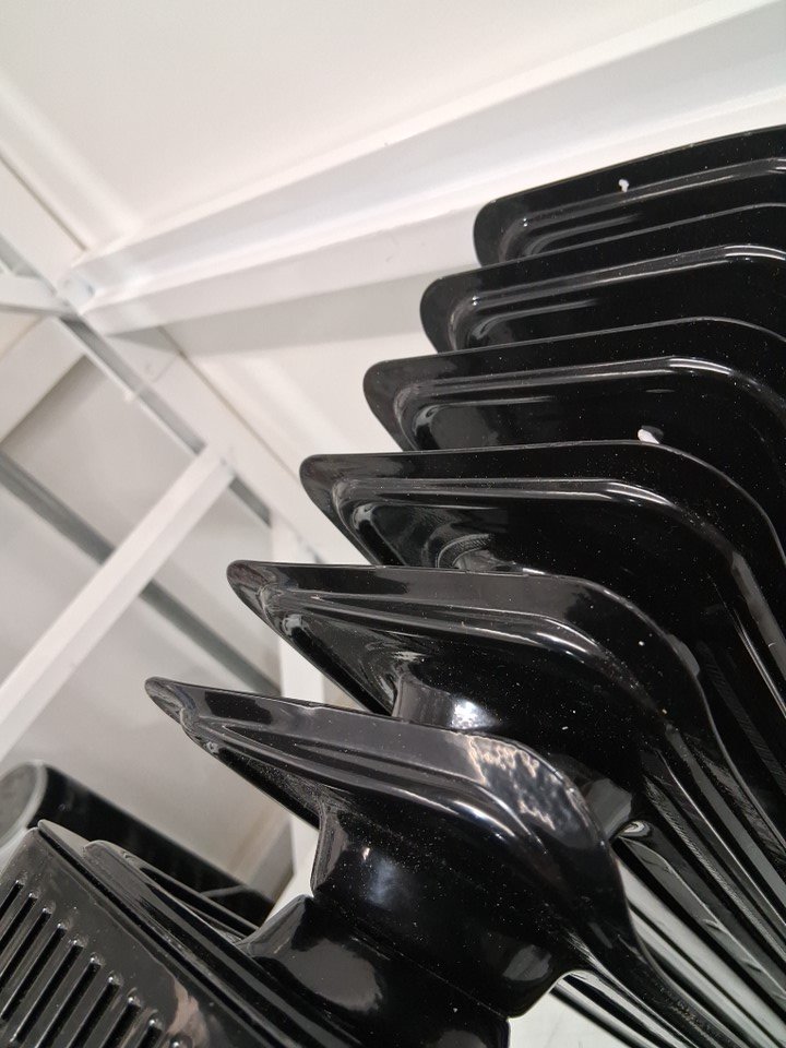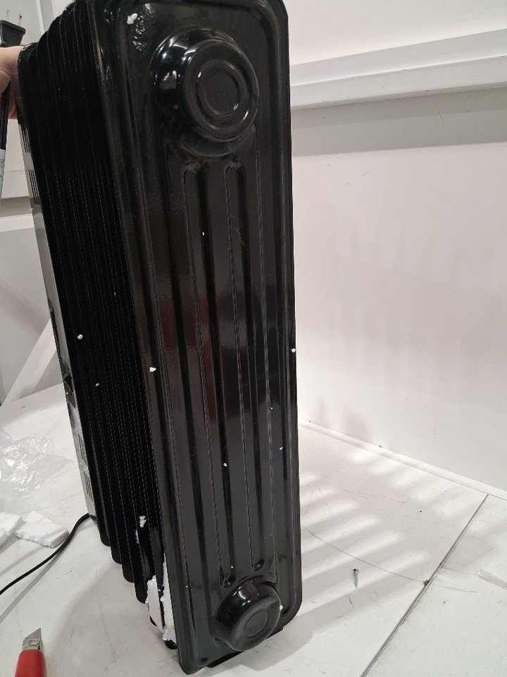 there is a bent piece at the top of the heater as well as a small broken piece from the bottom. tested for power.