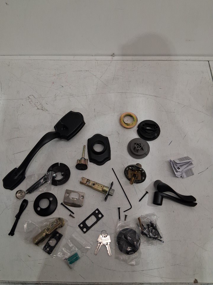 The big door handle has some scratches/paint chips on it and the latch for the door was swapped out. The new latch is silver when it is supposed to be black, everything else looks good.