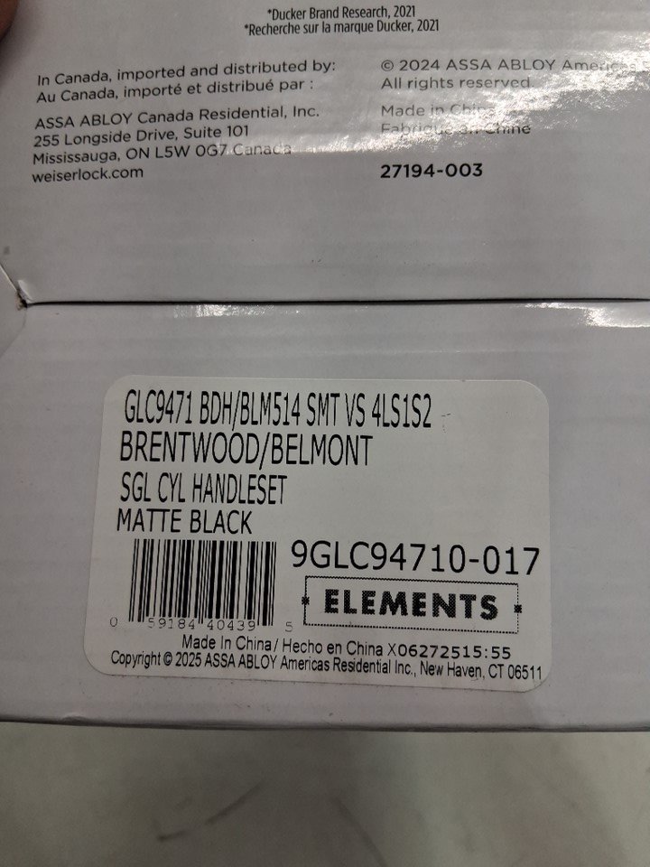 WEISER ELEMENTS BRENTWOOD BELMONT HANDLESET - MATTE BLACK (MODEL: 9GLC94710-017)