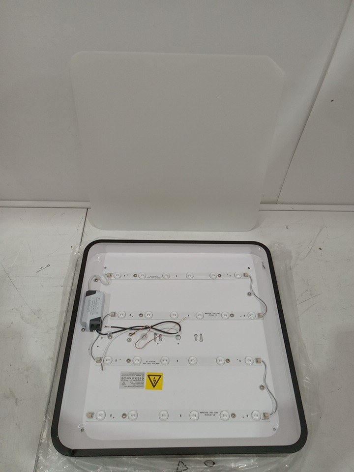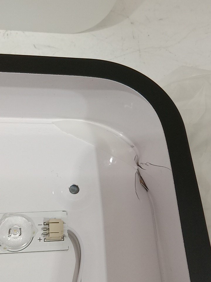 Please note that there are dents and cracks on the top-right edge and the bottom-left edge of the frame. Additionally, the ceiling light layer protector is cracked. Generic hardware will be required to install the product. Can't test due to the nature of the product. (Please see photos)