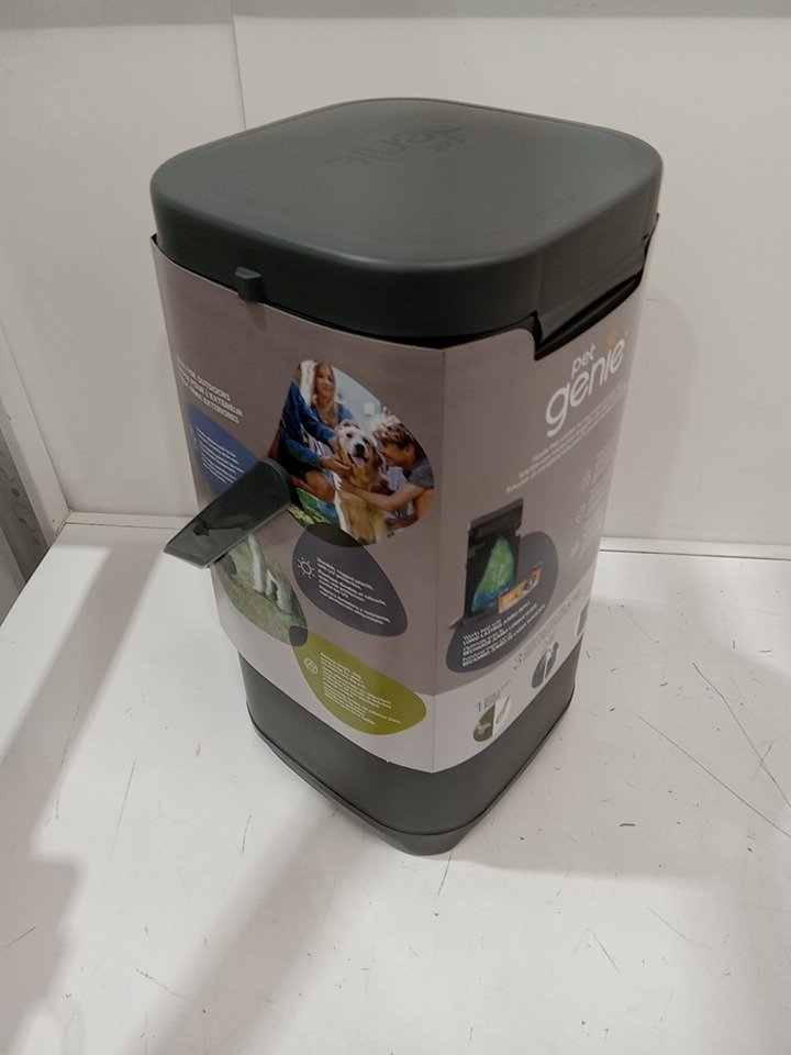 PET GENIE DOG WASTE ODOR CONTROL DISPOSAL PAIL - UP TO 2 MONTHS OF WASTE - 18.5" - GREY (MODEL: ‎I000711)