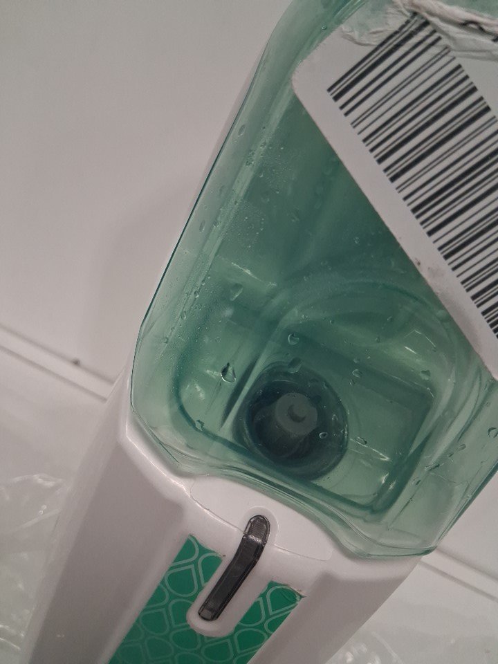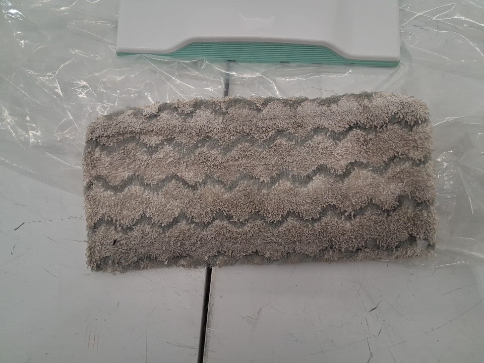 Pad for steam mop is visibly discolored, water droplets in cannister. Steam mop has some light scuff marks on them. Has been tested for power