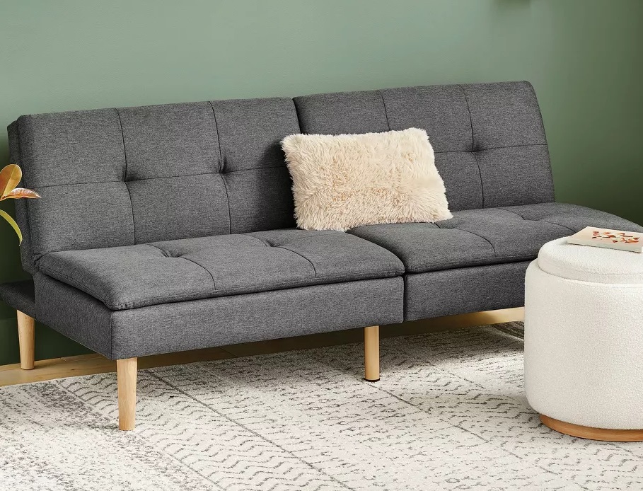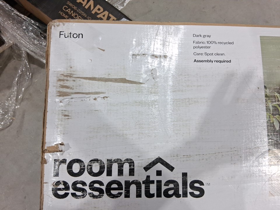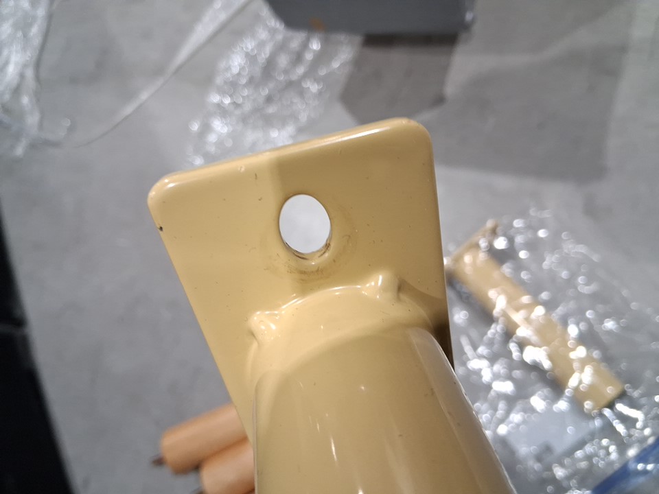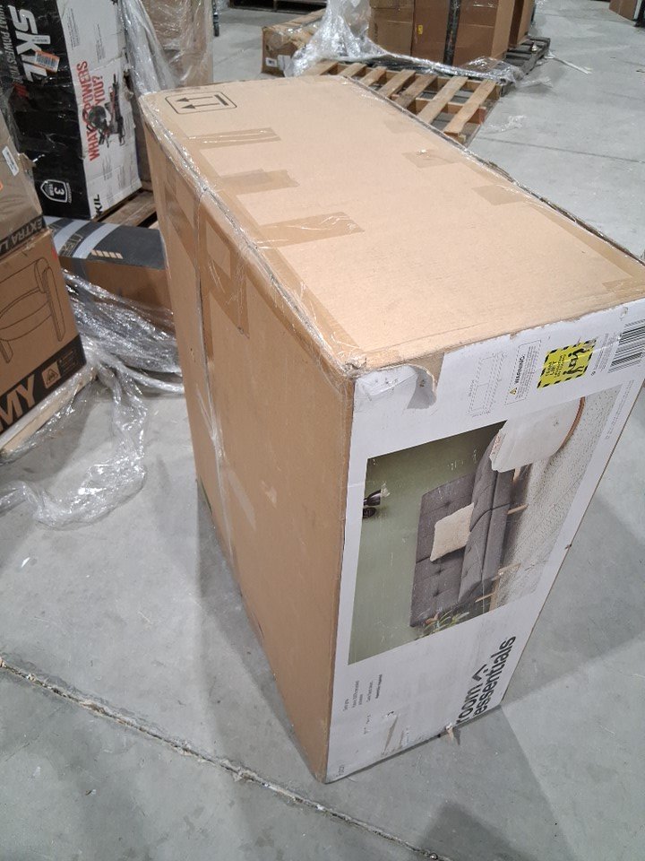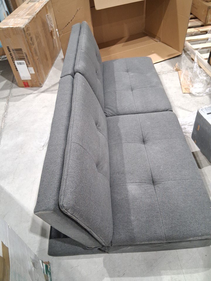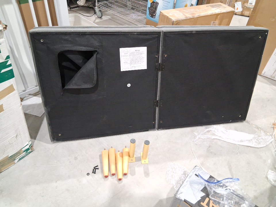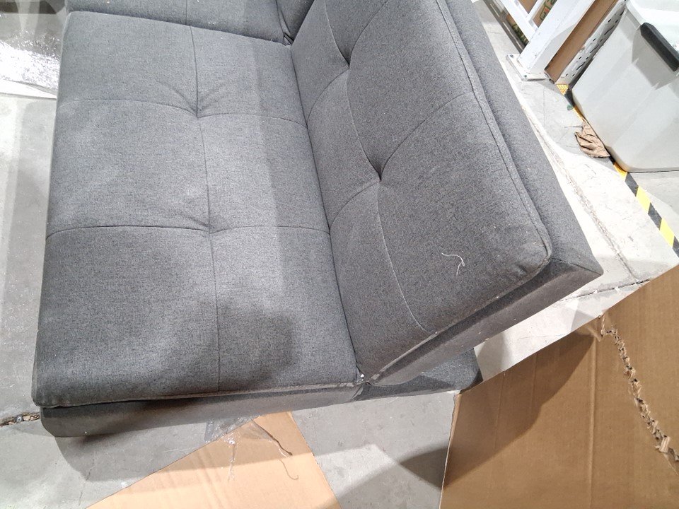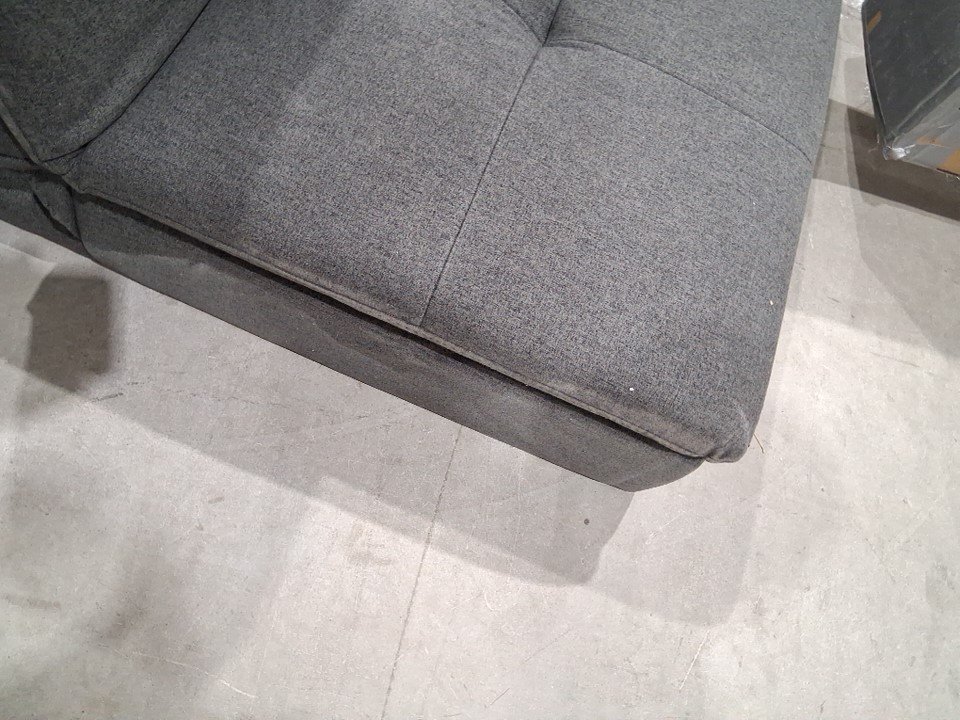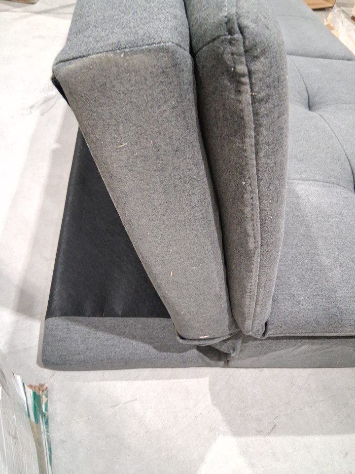 Faint assembly marks on metal legs Light dust and dirt on the fabric from warehouse floor