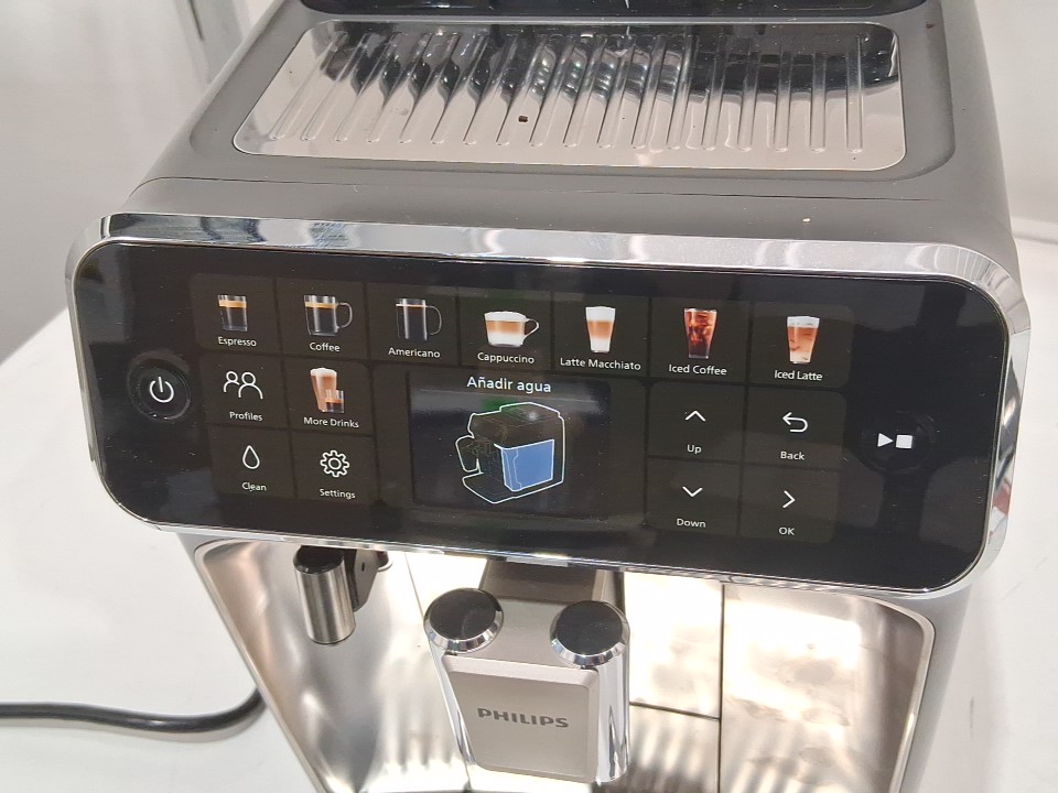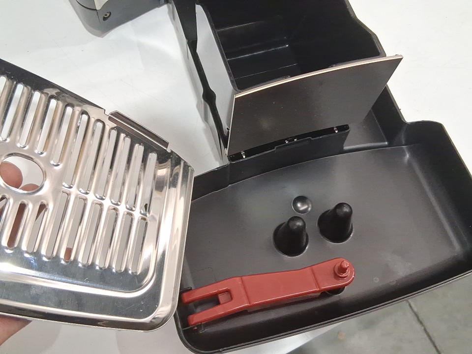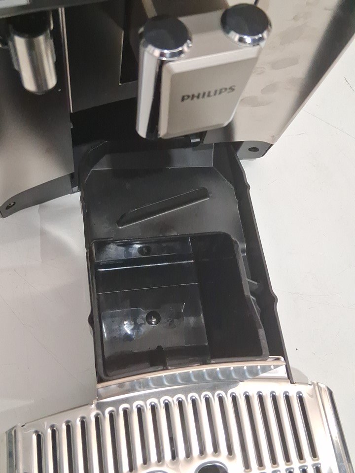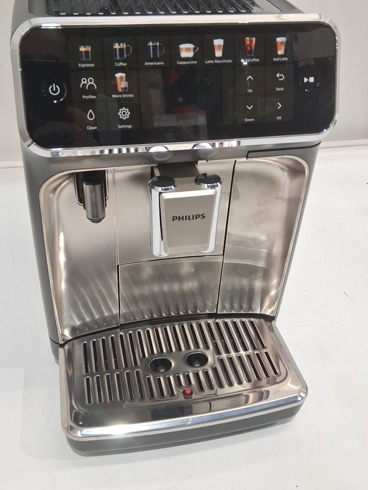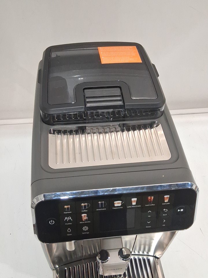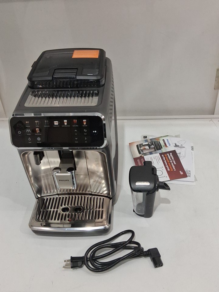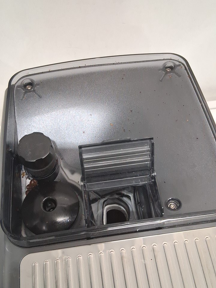 **Tested for power.** Item has minor coffee grounds debris in the hopper and throughout the machine, does not include a grease tube, measuring scoop, or water hardness test strip from previous gentle use, see photos.