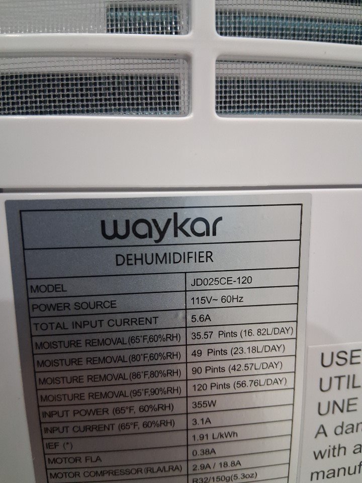 WAYKAR Energy Star Dehumidifier - 6000Sq.Ft coverage 1.14GAL TANK - WHITE - (MODEL: JD025CE-120)