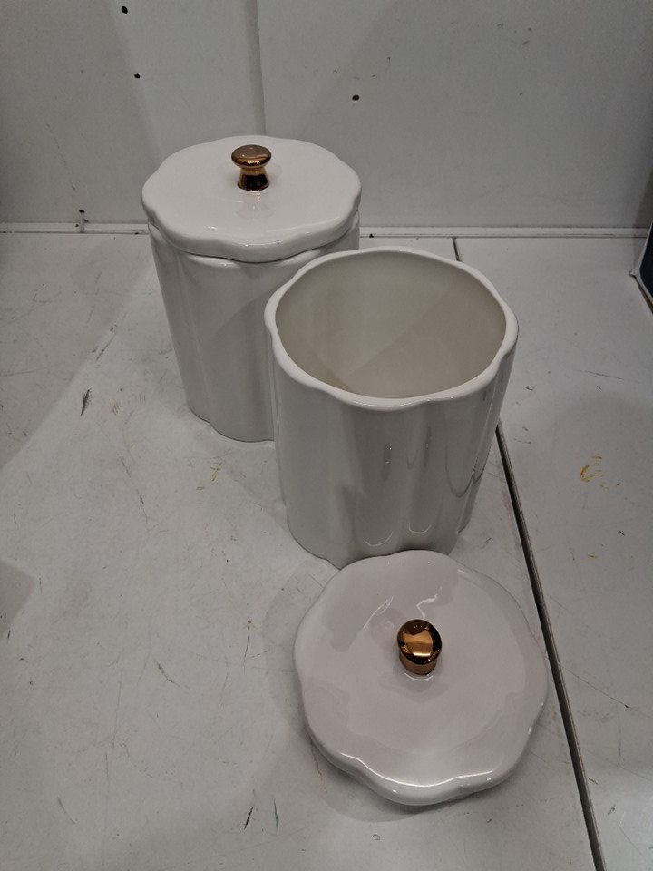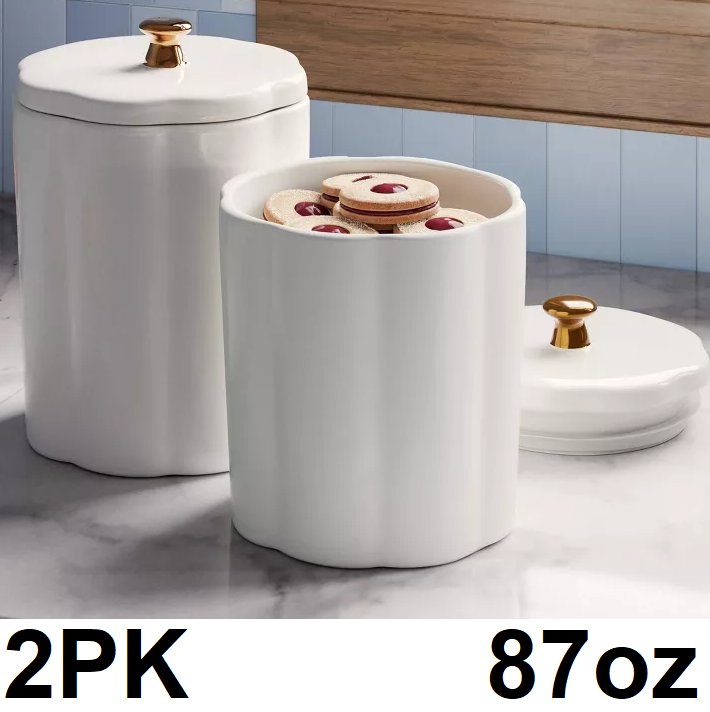 2PK THRESHOLD STONEWARE FOOD STORAGE RIBBED CANSITER WITH LID - WHITE - 87oz (model: 200-04-9171)