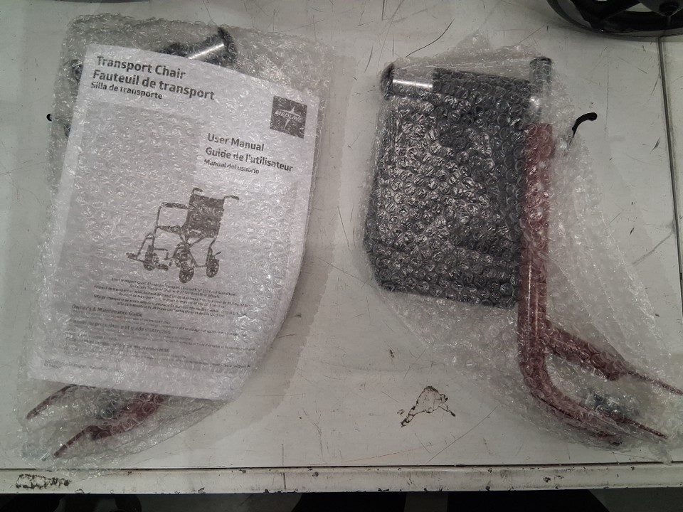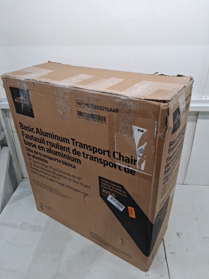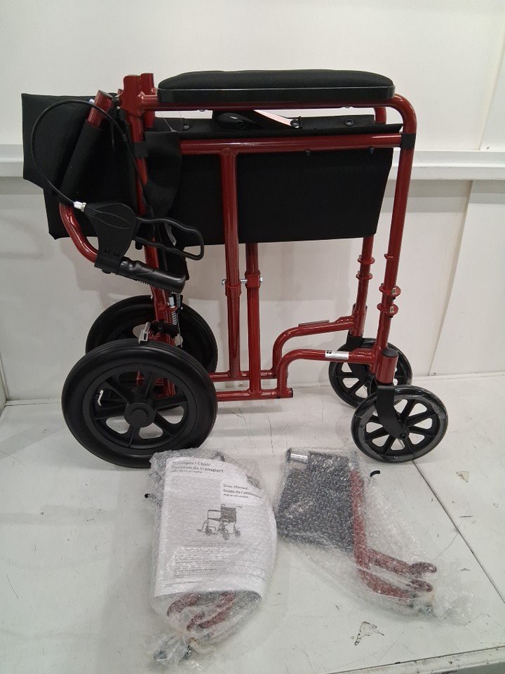 MEDLINE BASIC ALUMINUM TRANSPORT WHEELCHAIR - 19" - 12" REAR WHEELS WITH BRAKES - 300lbs capacity - RED (MODEL: MDS808210ARE)