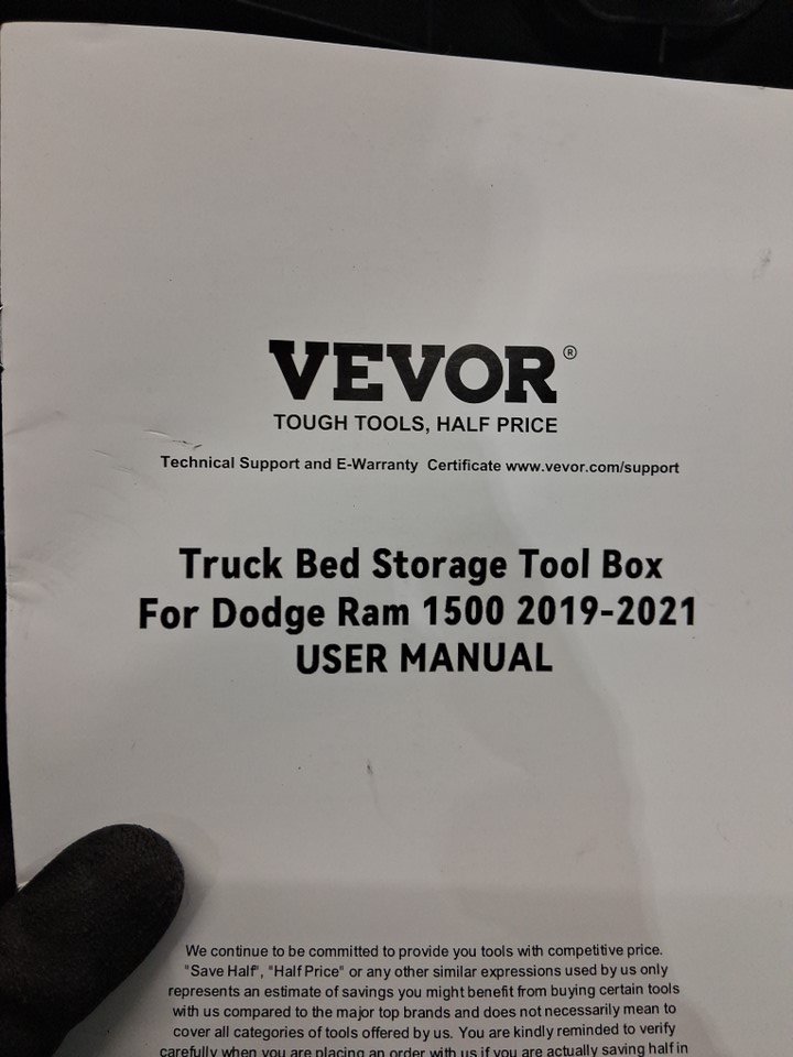 VEVOR truck bed storage box, lockable lid, waterproof tool box - Dodge ram 1500 2019 - 2021 25L - black (Model: ZP20220406C01)