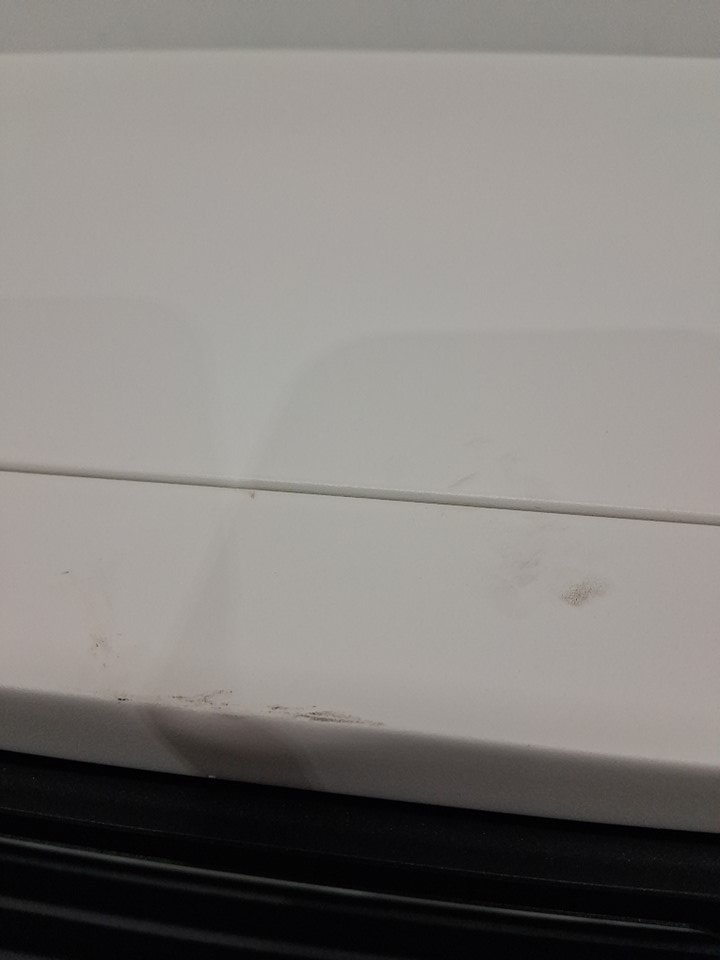 There is some dirt on the top of shop heater and a dent, see photos.