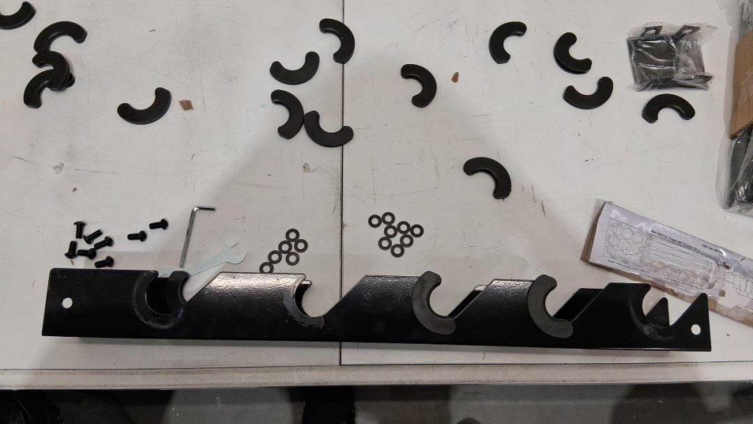 there's some hardware missing, some washers and nuts. The rubber pieces have come off on much of the item, but can be glued back on