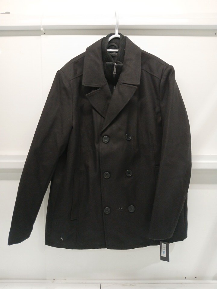 Men's kenneth cole Double Breasted Wool Blend Peacoat with Bib - EXTRA LARGE - dark grey (style: 440nb304)