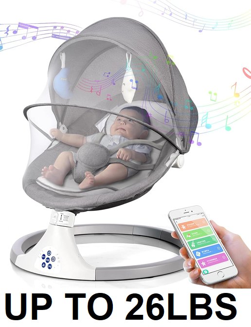 zxyculture electric baby swing chair with bluetooth control, speaker - up to 26lbs - Grey