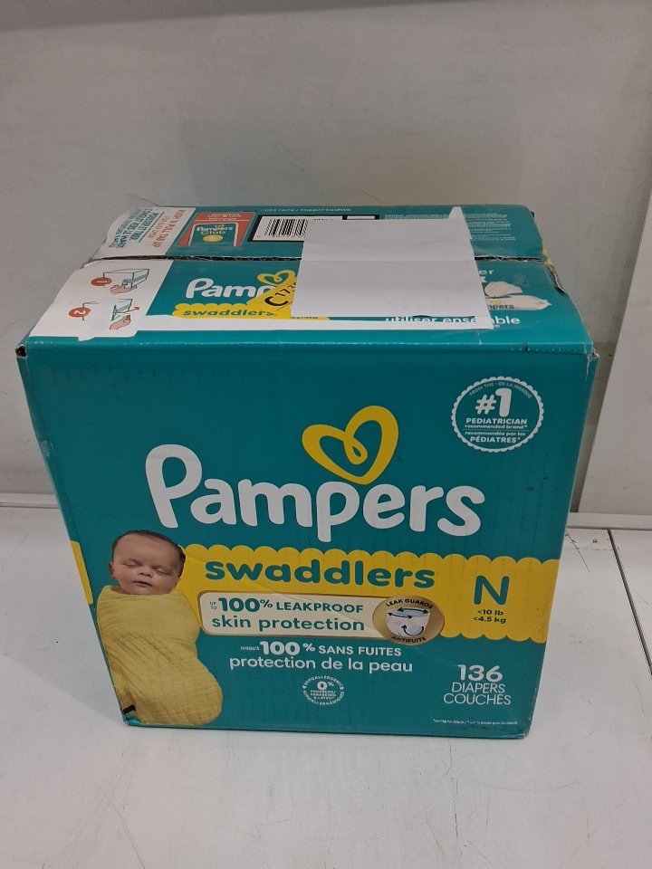 136PK PAMPERS SWADDLERS DIAPERS - NEWBORN SIZE 0