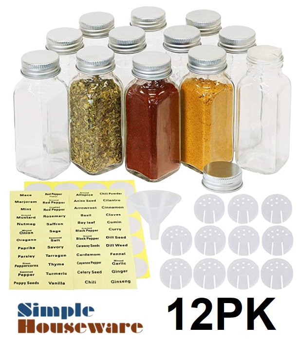 12PK SIMPLE HOUSEWARE SQUARE SPICE BOTTLE WITH LABEL
