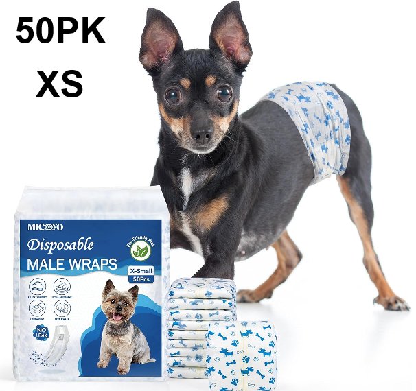 MICOOYO Male Disposable Super Absorbent Dog Wraps - XS - 50PK