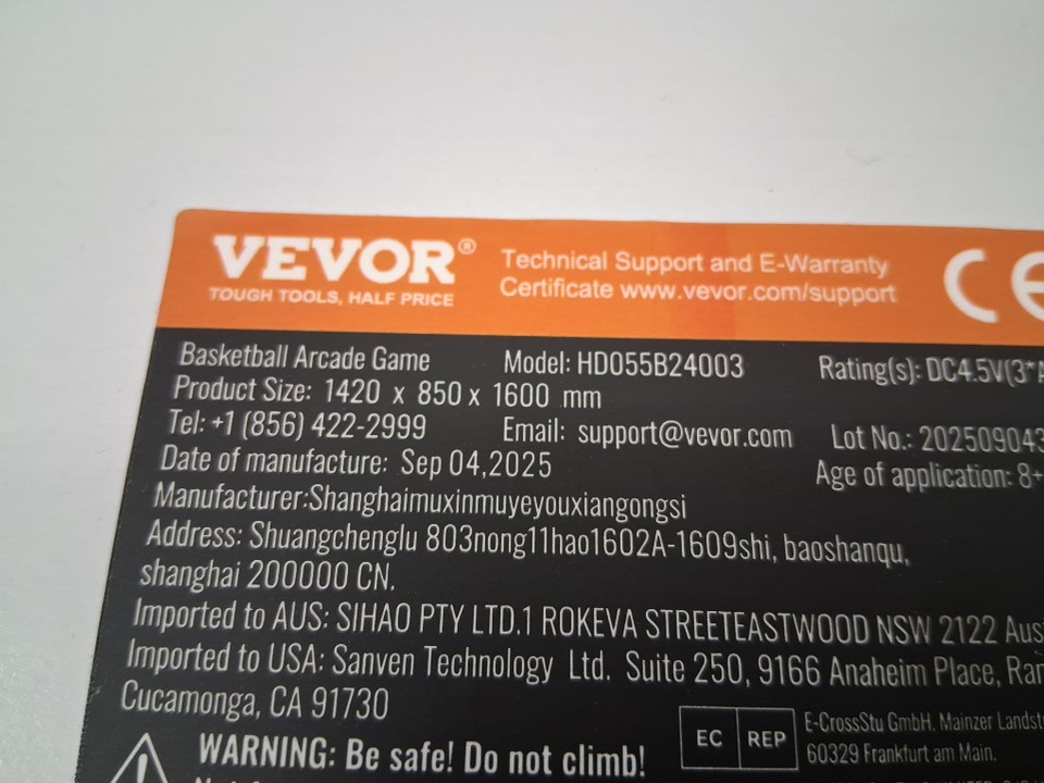 VEVOR Foldable 2-player Basketball Arcade Game with 4 Balls and LCD Electronic Scoreboard - 63" - 8 game modes - multi-colour (model:HD055B24003)