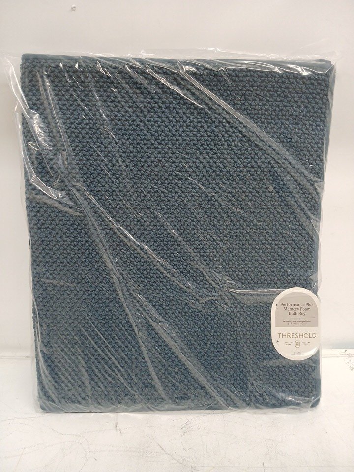 threshold performance plus cotton memory foam bath rug - 20" x 34" - dark teal blue