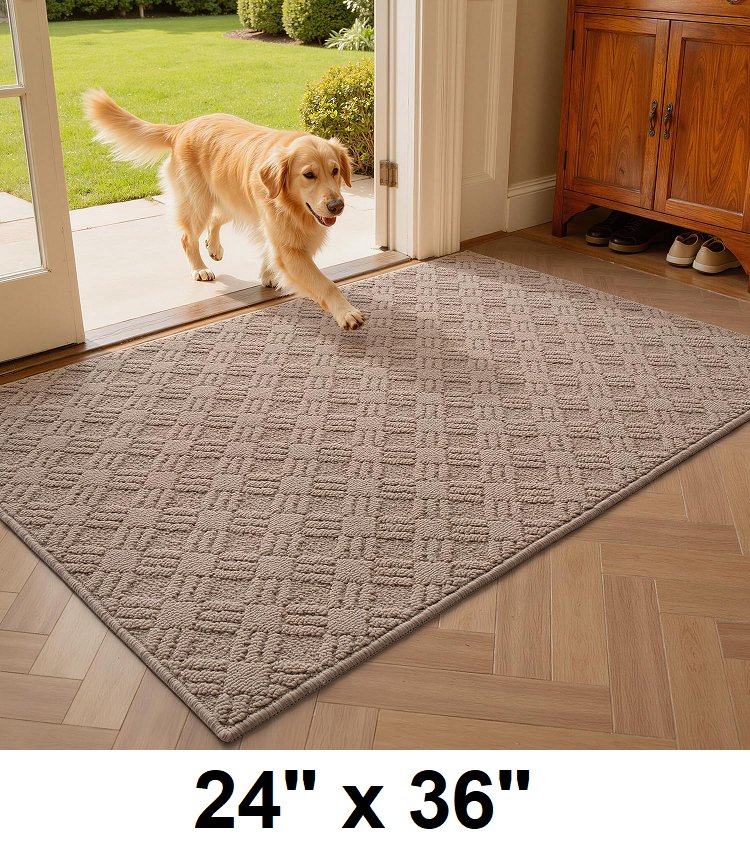 LUMI Indoor Door Mat, Absorbent Non-Slip Thin Doormat, Washable Door Mats, Woven Pattern - 24" x 36" - taupe