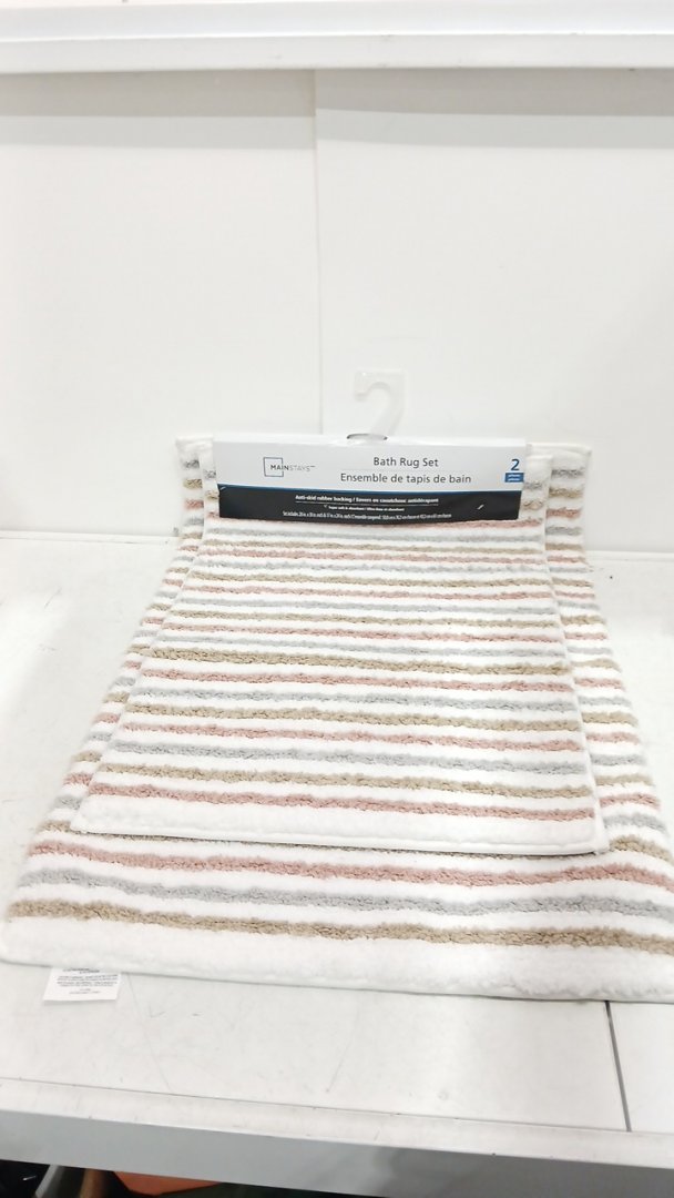 2PC MAINSTAYS STRIPED TUFTED ABSORBENT BATH MAT RUG SET - 20" X 30" / 17" X 24" - CORAL MULTICOLORED