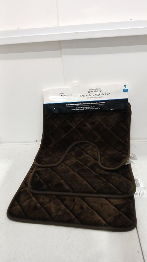 3PC MAINSTAYS MEMORY FOAM EXTRA CUSHIONED BATH MAT RUG SET - ASSORTED SIZES - BROWN