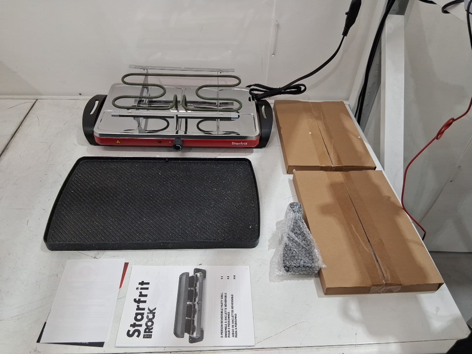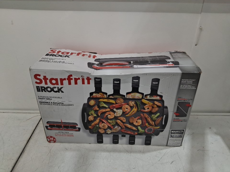 starfrit the rock 2-in-1 electric party raclette griddle & grill set - 16"X9.5" (serves 8) - red (model: 024403)