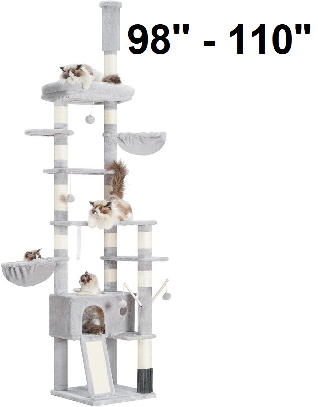 Hey-Brother extra tall cat tree climbing tower - 98" to 110" - grey (model: MPJ091)