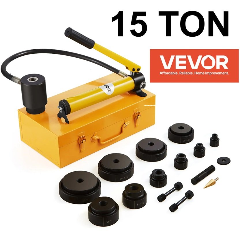 vevor 1/2" to 4" Hydraulic Knockout Punch Kit KO Tool Kits with Puncher - 15 TON - yellow (model: SYK-15)