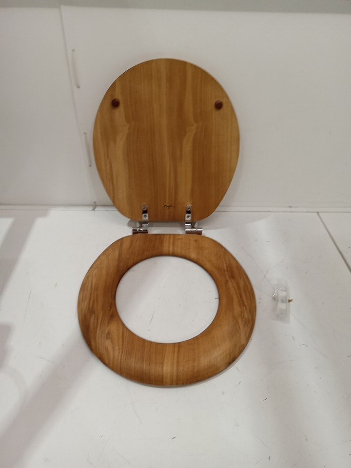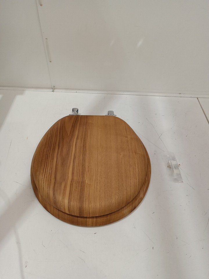 MAYFAIR BY BEMIS ROUND WOODEN TOILET SEAT WITH CHROME HINGES - NATURAL OAK VENEER WITH CHROME HINGES (MODEL:9601CP)