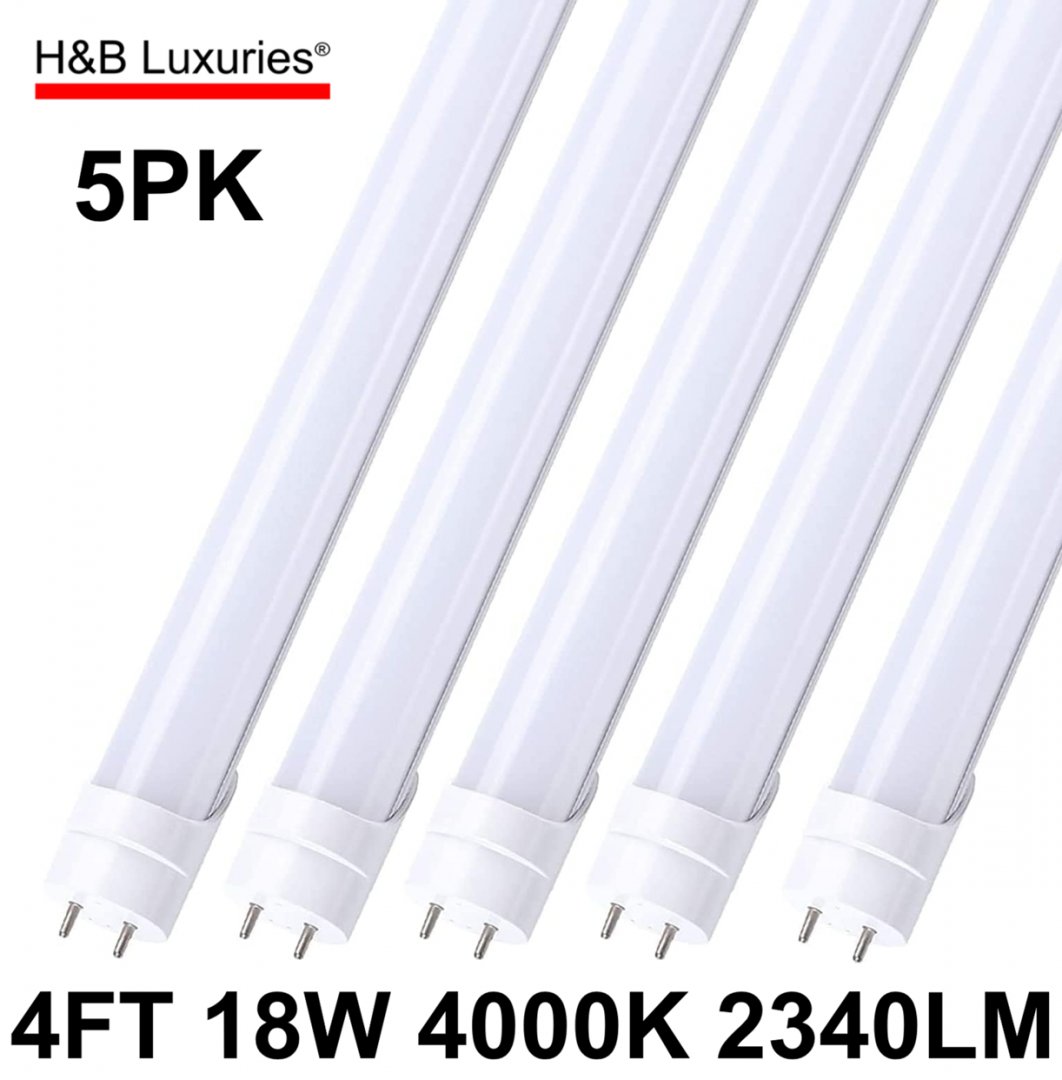 5PK H&B Luxuries T8 Ballast Bypass Type B LED Light Tube - 4FT 18W 4000K 2340LM (Model: DYU-T8LBBEUL1218M-40-A)