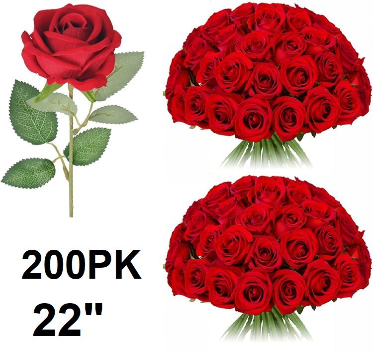 200PK umisu Artificial Silk Roses Flowers for Home Decoration - 22" - RED