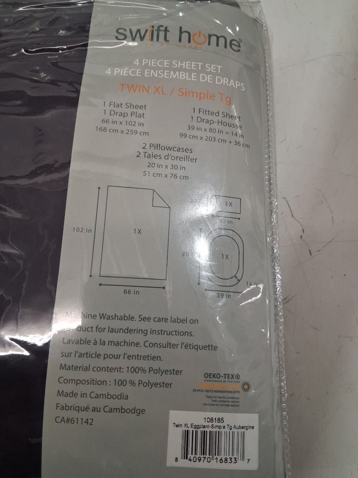 4PC Swift Home Smart Sheets with Side Storage Pockets - twin- eggplant/purple