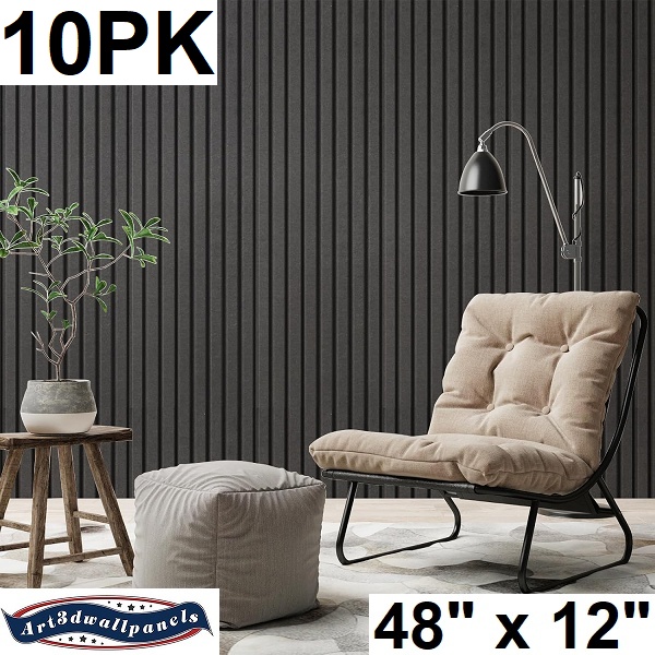 10pk art3dwallpanels acoustic soundproof self adhesive wall panels - 48" x 12" - black