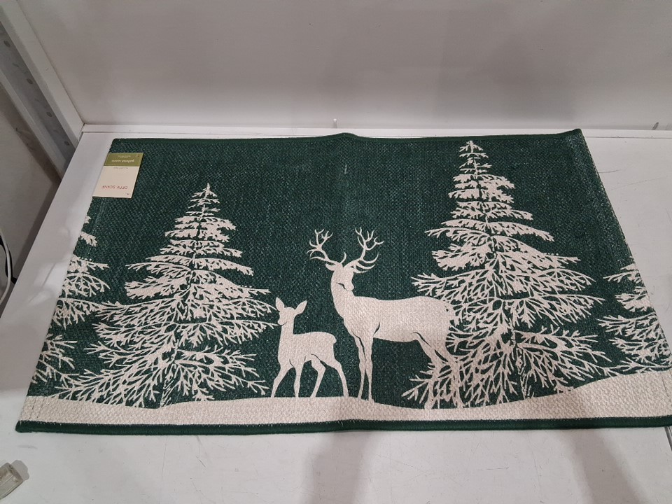 gathered space Winter Deer and Fawn Scatter Rug - 20" x 34" - teal/white