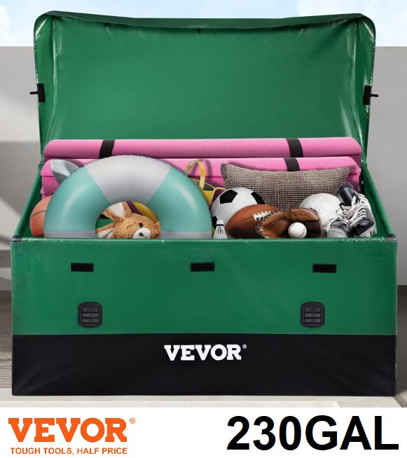 VEVOR all-weather outdoor storage box - 230gal. capacity - black/green (model: jh-230)