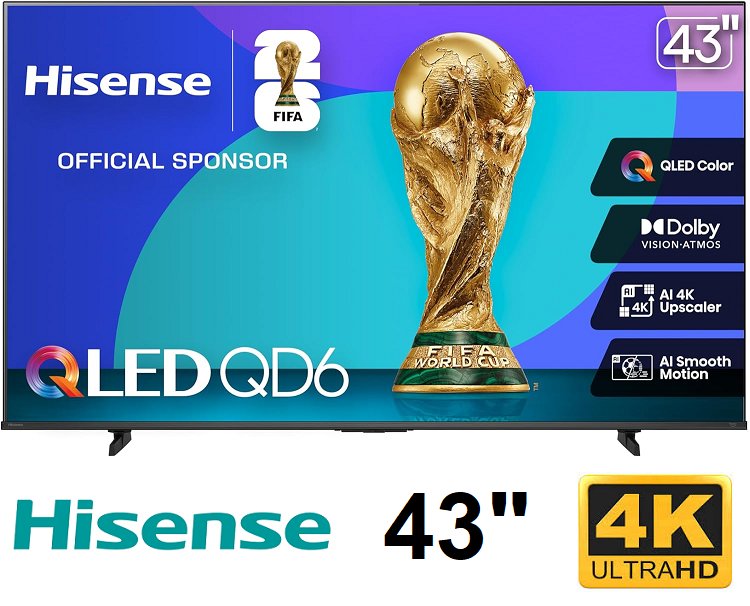 Hisense 43" 4K Smart QLED Fire TV - with Dolby Vision & Atmos, AI 4K Upscaler, AI Smooth Motion, Game Mode Plus - black (model: 43QD6QF)