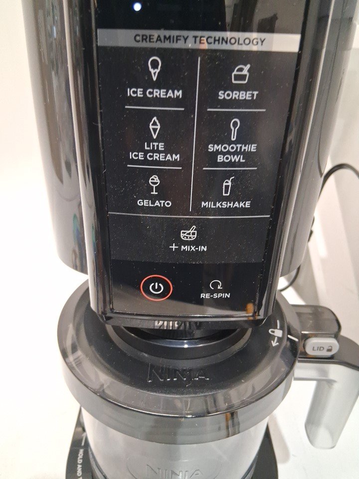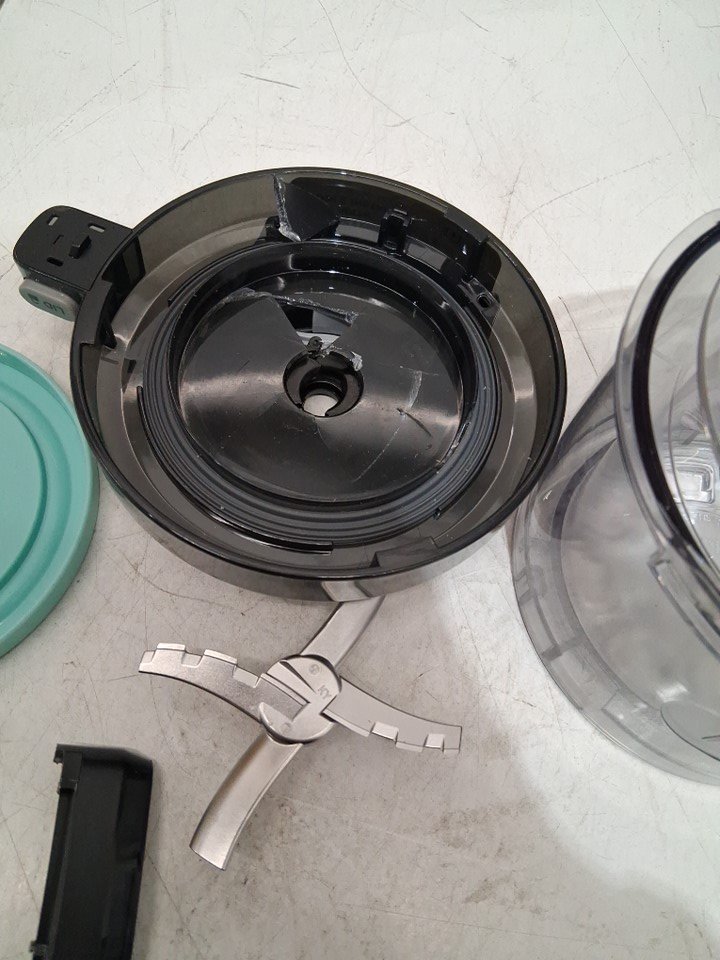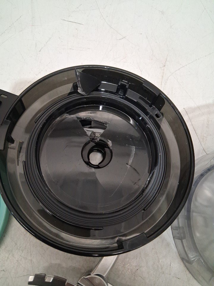 -Tested for basic power. -Item has light marks and scuffing showing previous use. -Please be advised that item has minor chipping on edges and sides. -The lid where the blade goes is broken so may need to be replaced for proper functionality. -The back panel of the machine is also broken, see photos for reference.